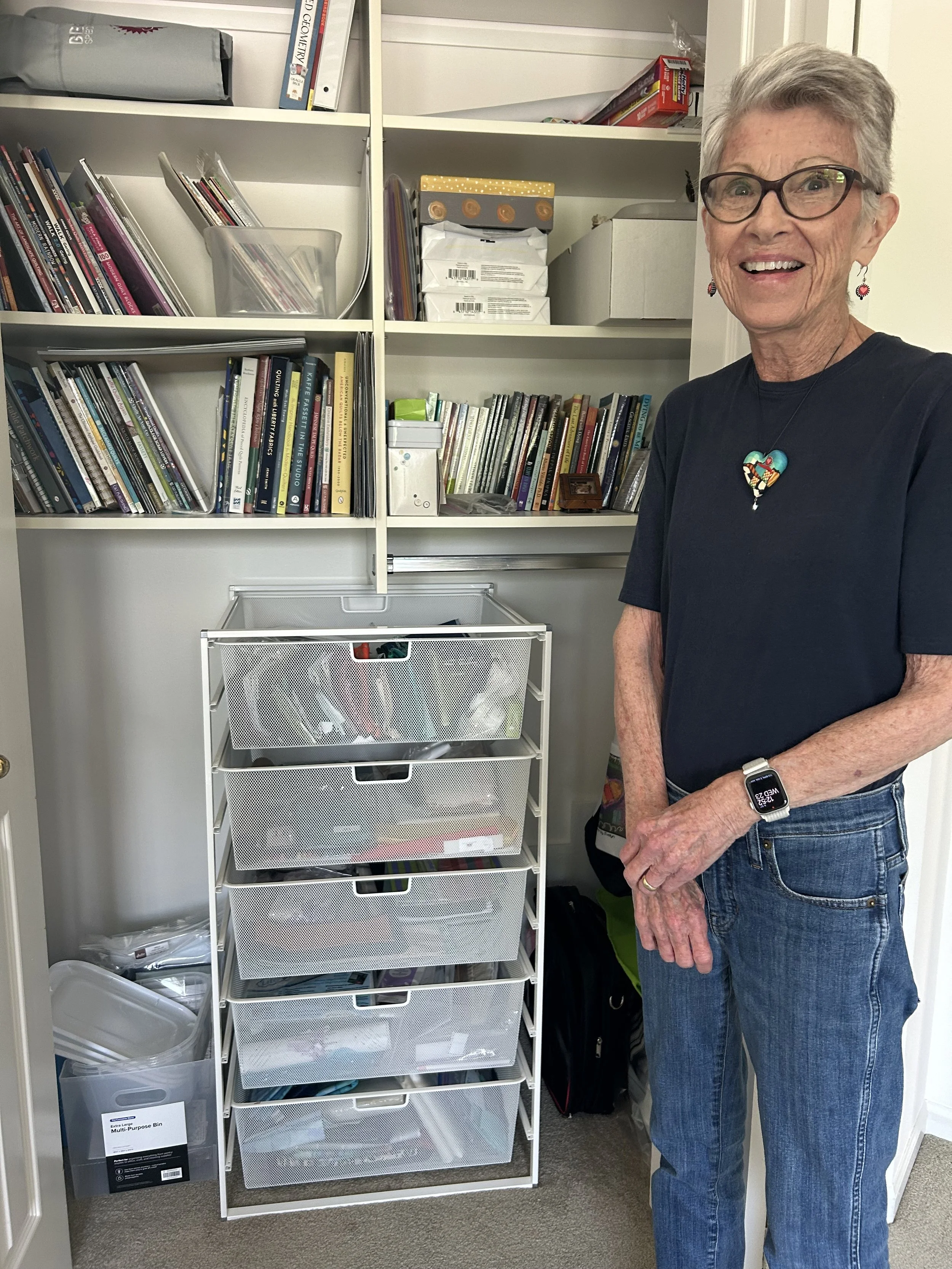 Julie Milne, a remarkably vibrant and active snowbird, showed me many stunning needlework projects amid a home that was so lovely and calm, I immediately felt I needed to go home and declutter! And she gave me gifts - a stunning large quilt for our upcoming Silent Auction as well as some lovely quilts for Staben House. Julie says needlework is in her genes – her great grandmother from Ireland handmade a beautiful infant baptismal gown worn by three generations of her family. Her maternal grandmother created most of Julie’s mother’s clothing including coats and hats. Julie’s mother was a well-known certified needlework teacher who taught all across the United States. She taught Julie embroidery when she was only 5 years old!