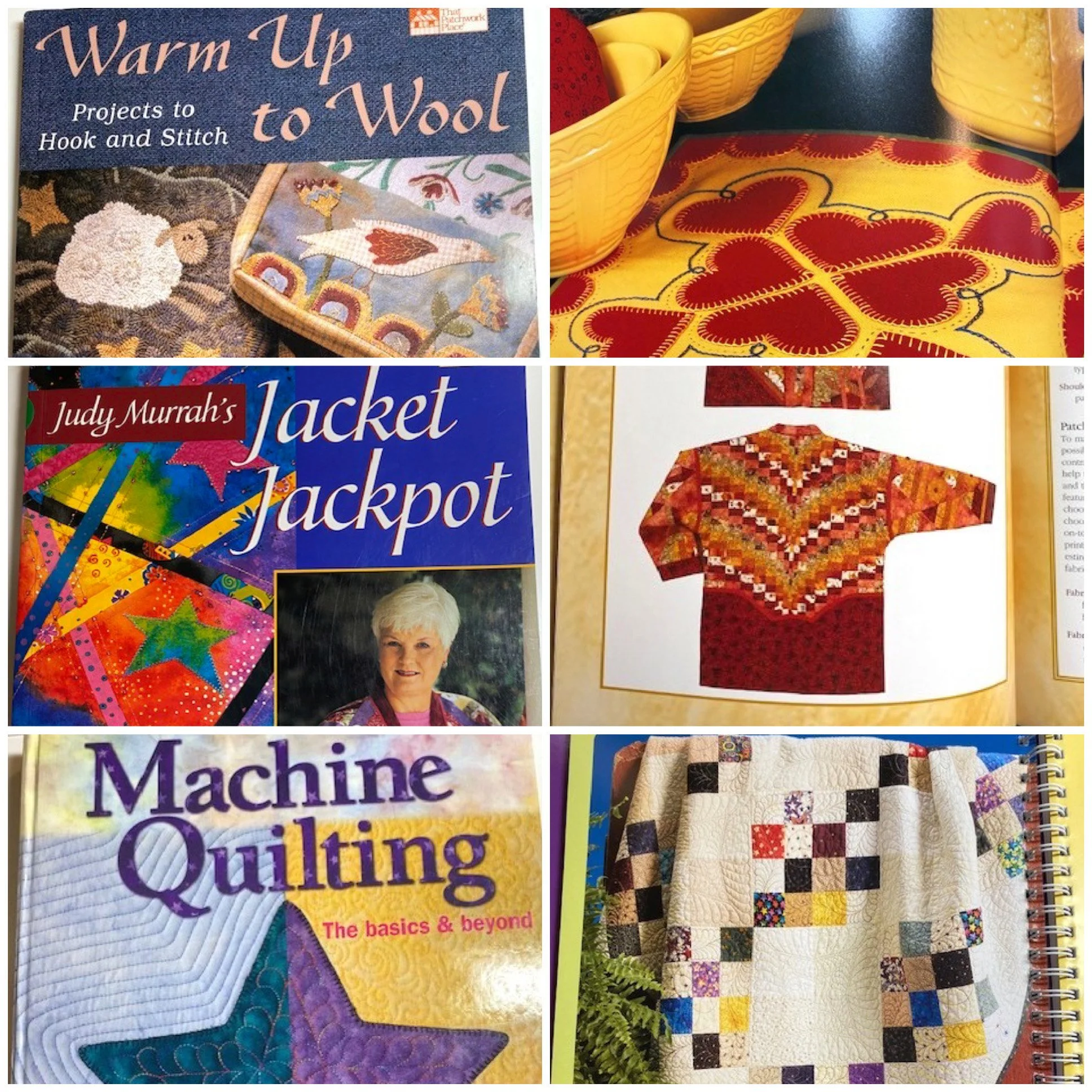 There are three books from the Village Quilters’ library that caught my eye this month. The first one is “Warm up to Wool: Projects to Hook and Stitch” by Martingale Press. This book begins with notes on preparing and dying wool. It shows basic stitches often used with wool applique, and then has some projects that look like fun – maybe for the boutique now that your quilts are entered. There are “Penny Rugs” (they look like mug rugs to me), small hooked rugs, and applique.