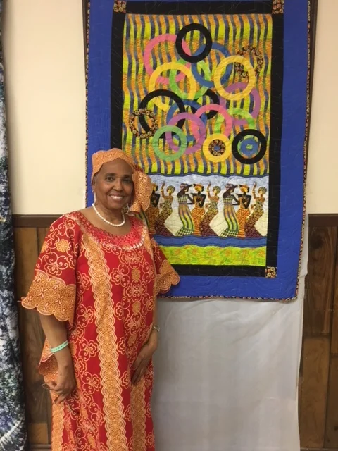 Recent visitors to Paducah were delighted to see this fabulous quilt exhibit by our own Yolande Sherrod. Yolande's quilts were on display at the historic Hotel Metropolitan Museum. As Yolande states in the exhibit brochure, "Quilts on exhibit here are a combination of my vivid imagination and of our rich heritage." The quilts were a feast for the eyes. Edie Hirasawa and Alice Hutchinson assisted Yolande as Curators of the exhibit.